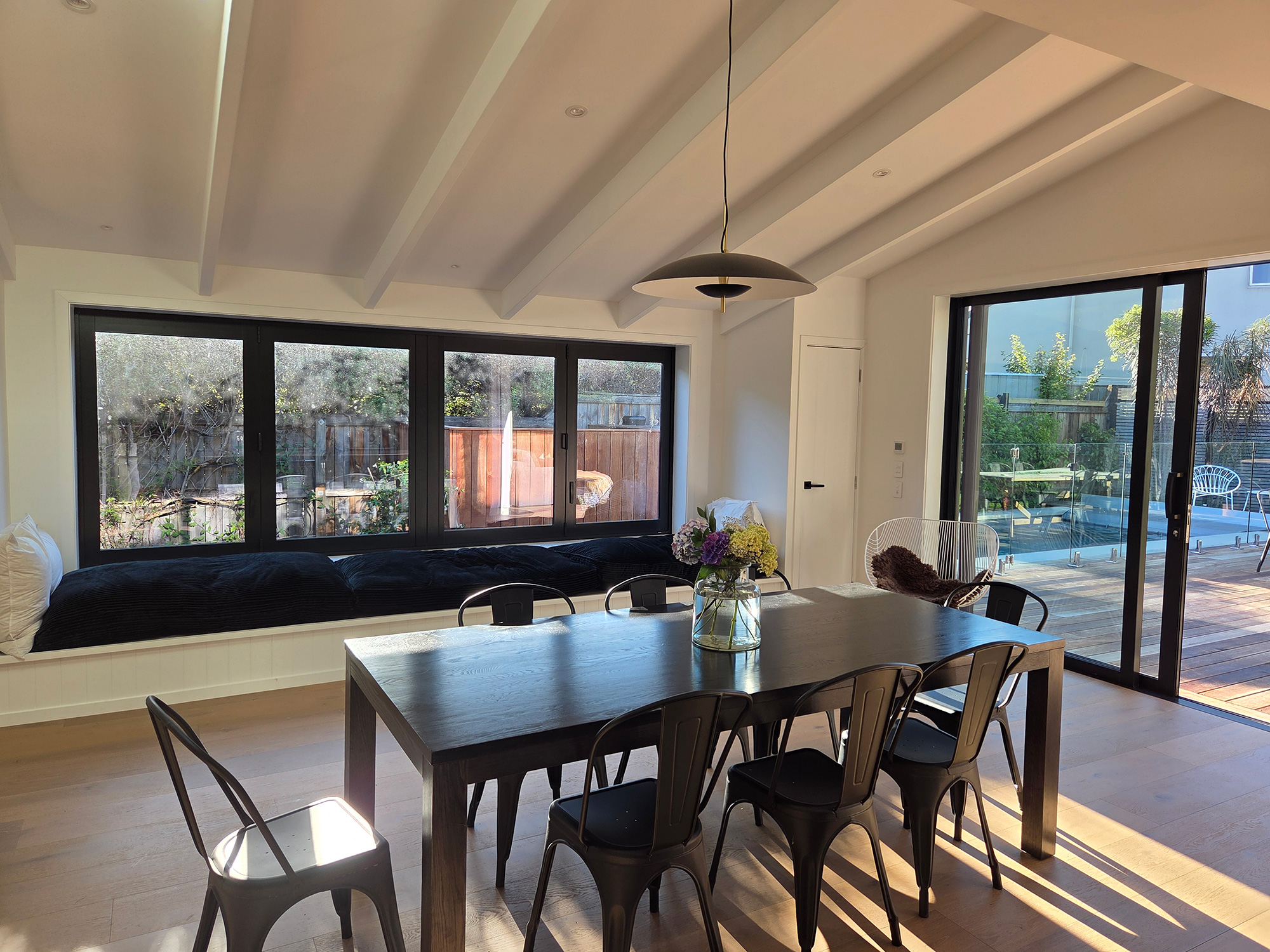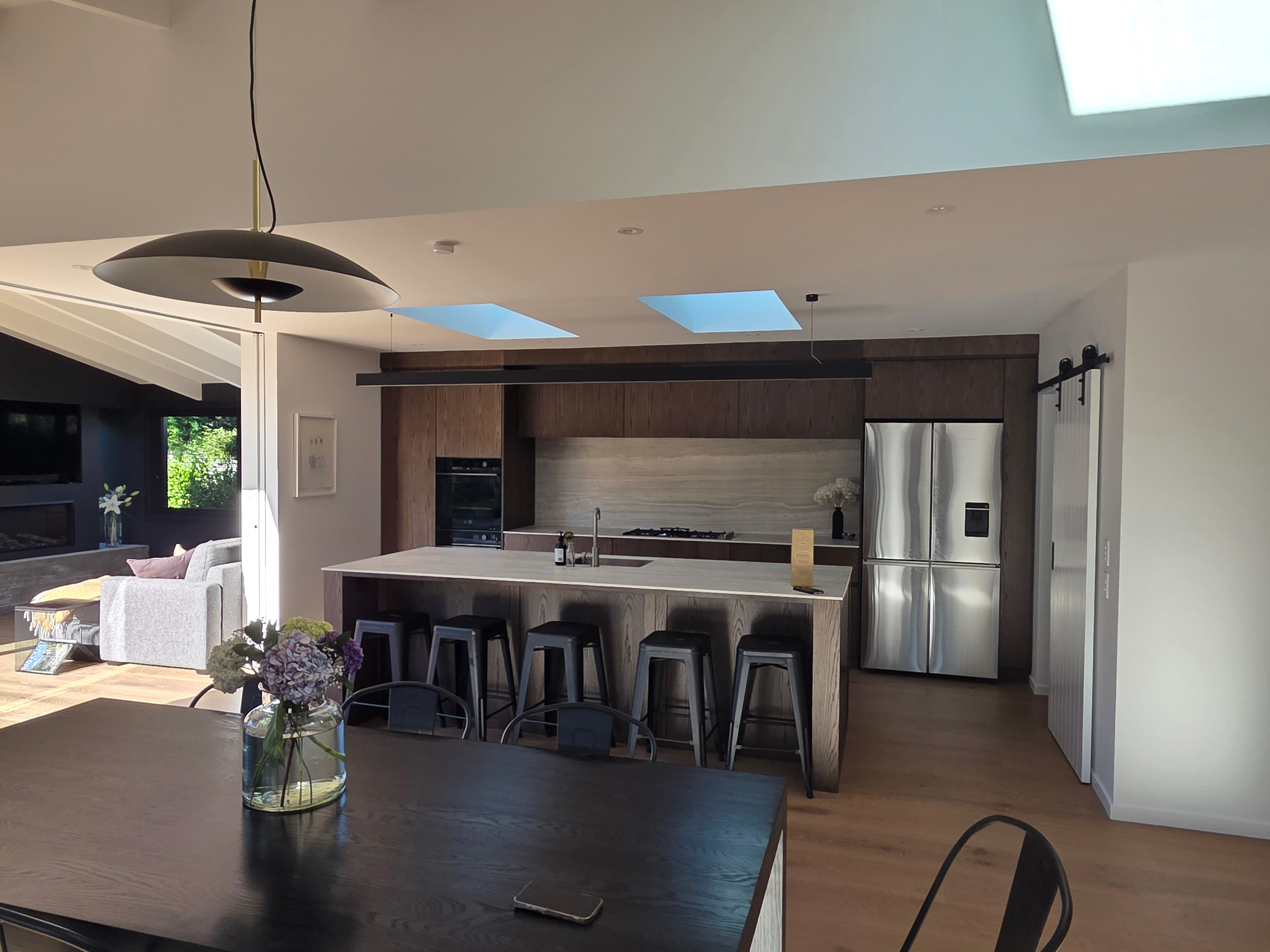 To meet the client's brief for more living areas, a series of new spaces have been created that vary in scale and volume. These extend and open up the home from the existing smaller spaces.