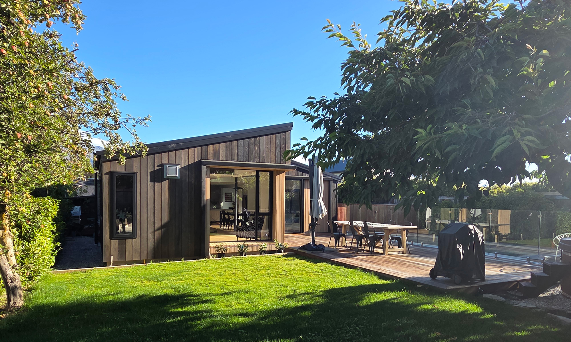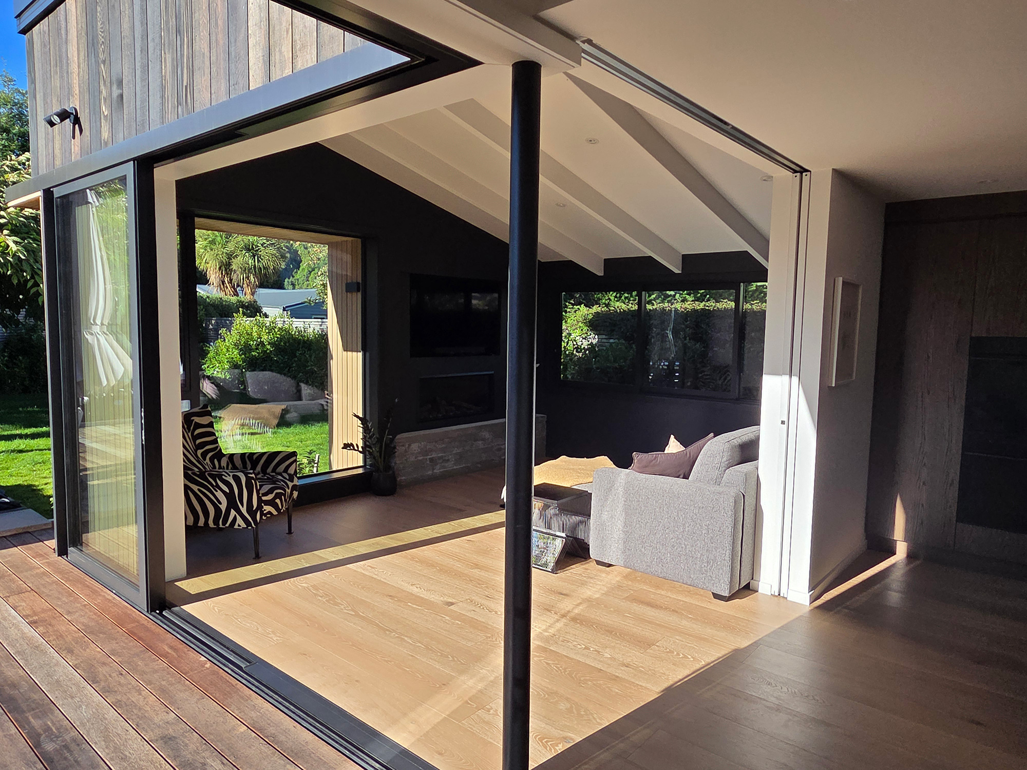 HMOA's alterations to an existing three-bedroom home in Arrowtown open onto a new swimming pool in the rear garden.