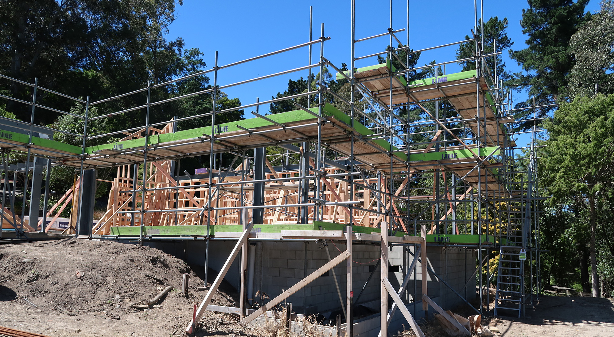 Getting out of the ground on a hill site is always challenging, and this project has been no exception. Thanks to the perseverance of Clive Barrington Construction, framing is now well underway, with the distinctive pyramid roof of the original John Vial design soon to be reinstated.