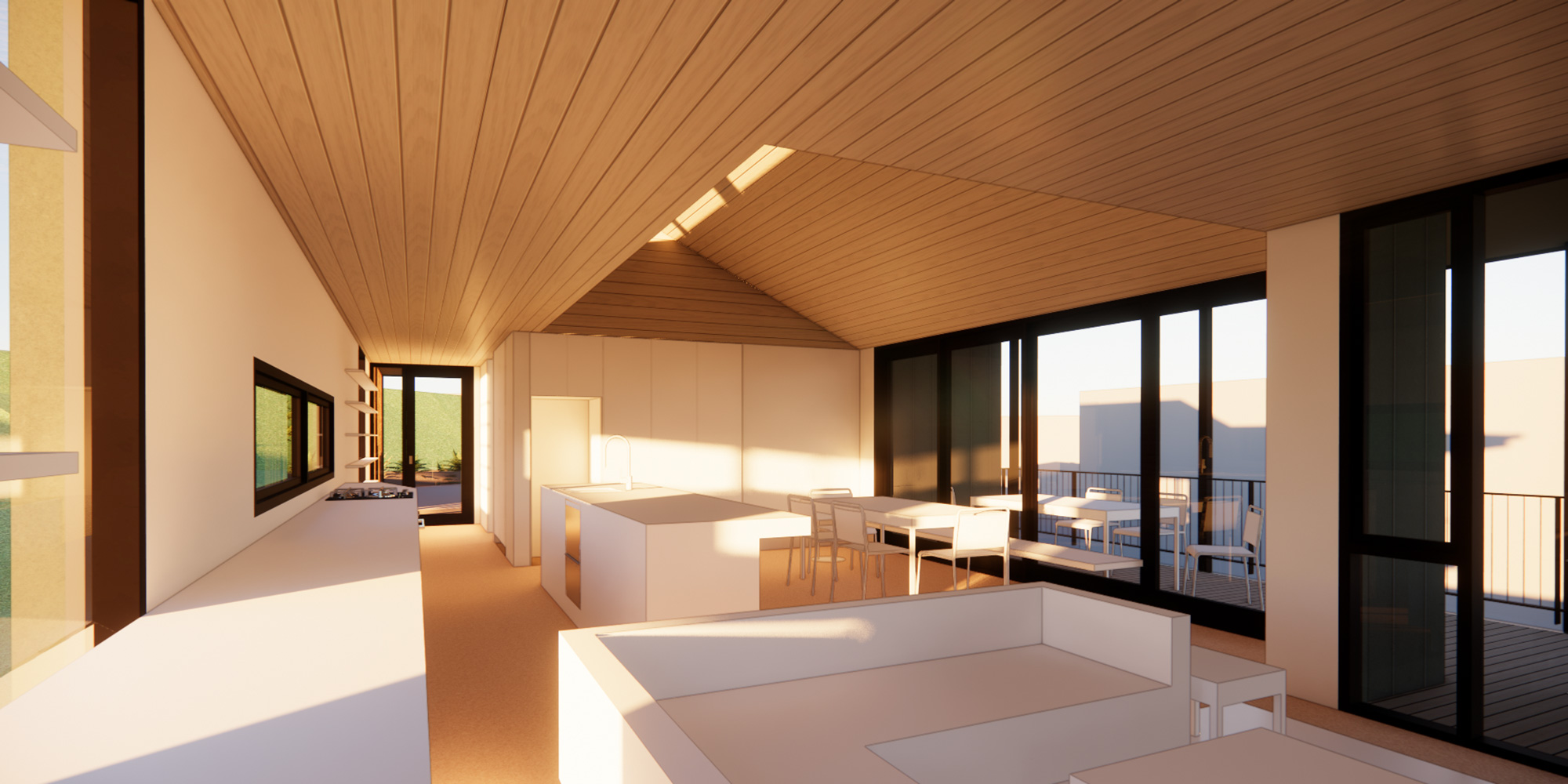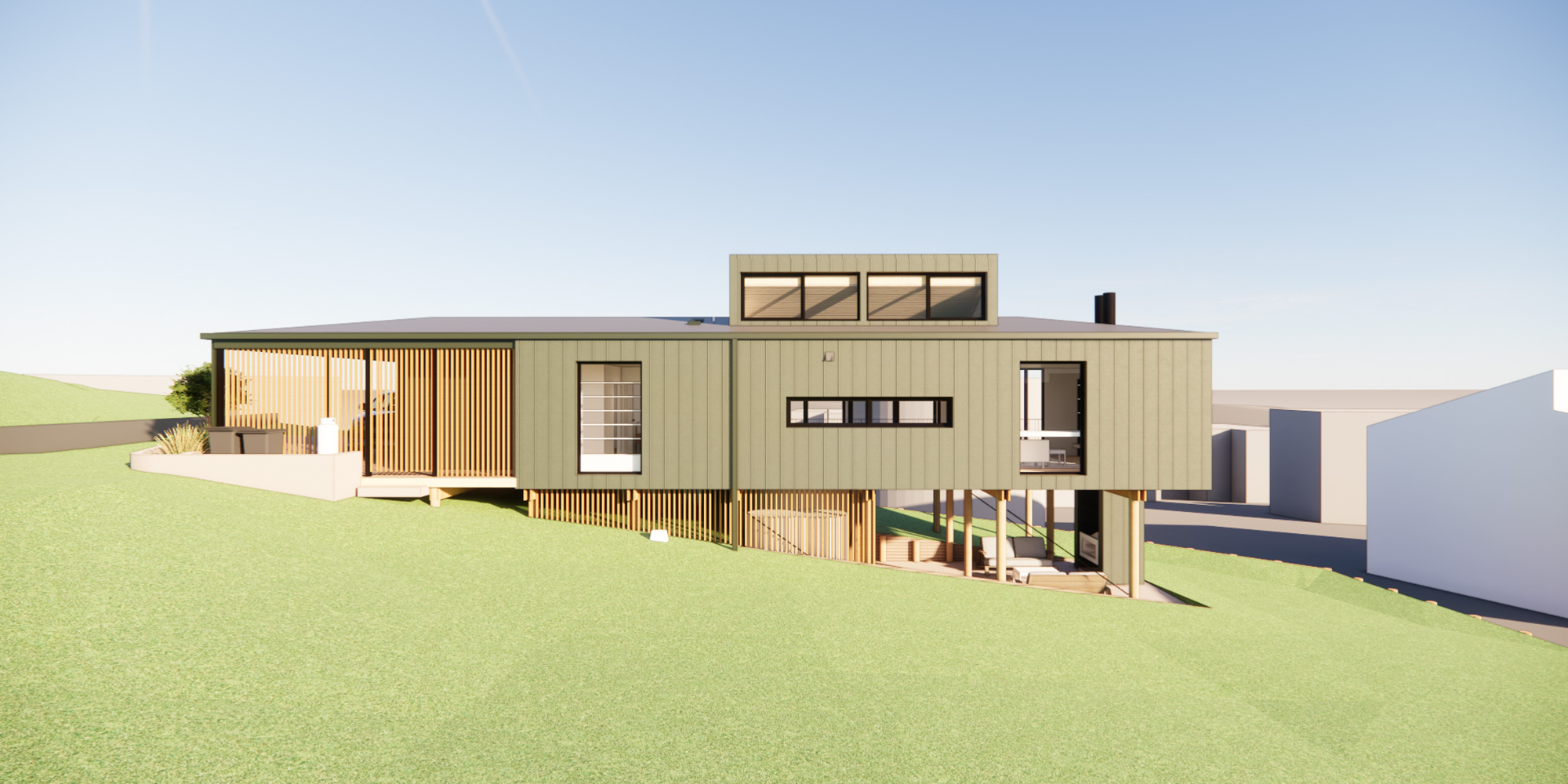 Sustainability is central to the design of this new house, with solar panels, water tanks and energy-efficient systems seamlessly integrated.